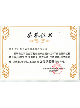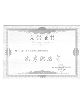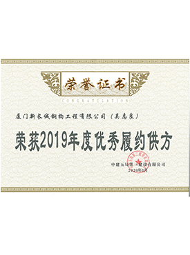 廈門新長誠2019年度優(yōu)秀履約供方榮譽證書