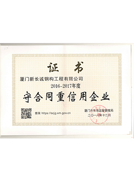 廈門新長誠鋼構工程有限公司守合同重信用企業(yè)2016-2017年度